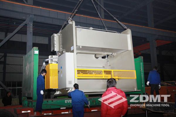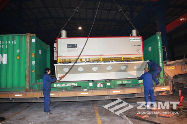 公稱壓力500噸的數(shù)控折彎機(jī)和剪切能力16毫米的數(shù)控閘式剪板機(jī)分別超過30噸和20噸,外形尺寸完全超過了普通集裝箱的尺寸。像這種類型的機(jī)器在國內(nèi)發(fā)貨很平常,但是對于出口來說情況卻完全不同。由于框架箱運(yùn)輸?shù)奶厥庑砸约昂_\(yùn)運(yùn)輸?shù)娘L(fēng)險性,對機(jī)器的包裝和捆扎是對工廠的新考驗(yàn)。